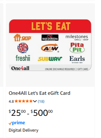 As an Amazon.ca Affiliate, Caily receives commissions on any gift card purchased through this site. 2% for amazon cards and 4% for other brands.